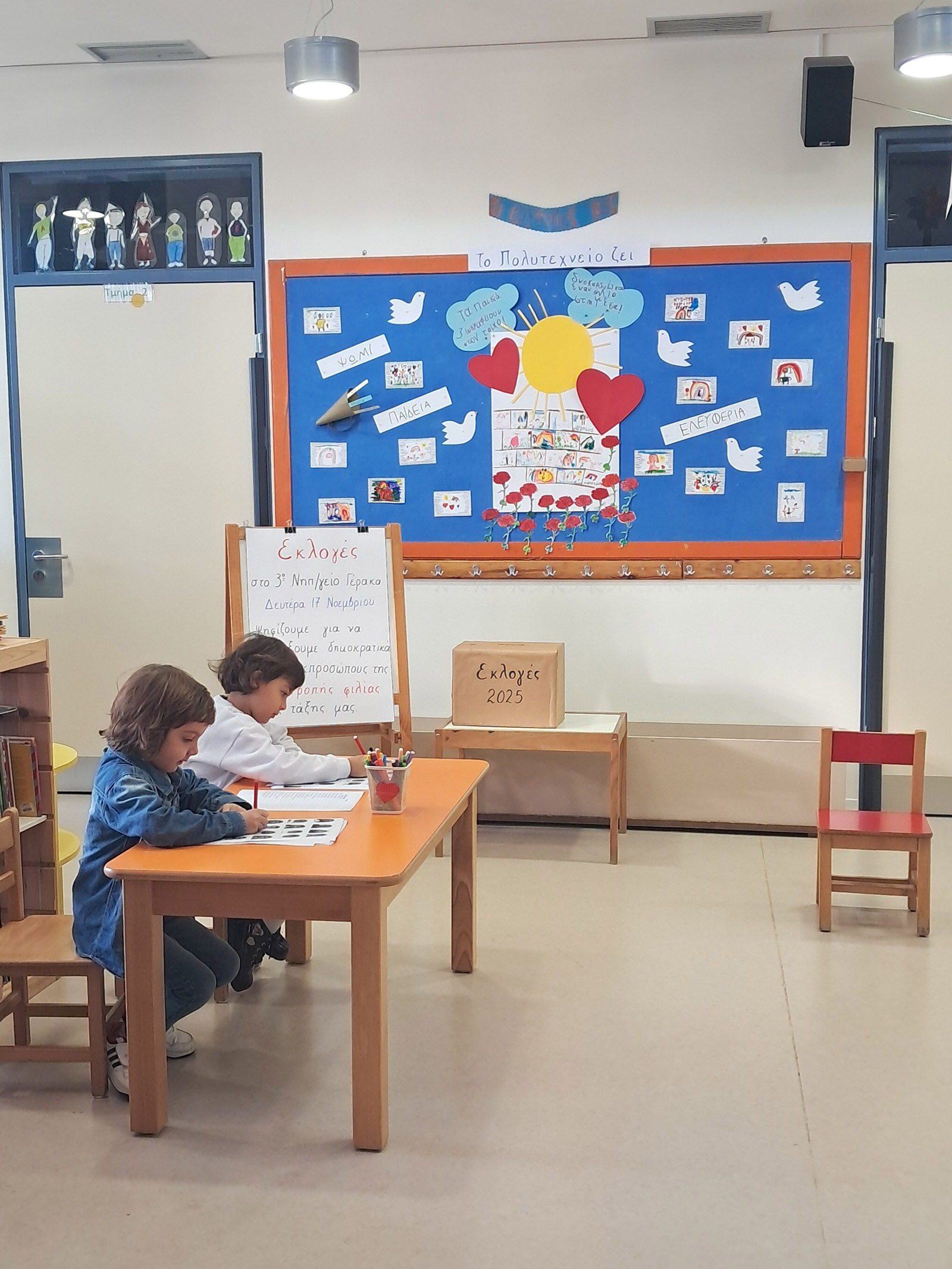 τα παιδιά συμμετείχαν σε ένα βιωματικό εργαστήριο εκλογών.
