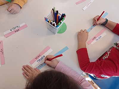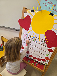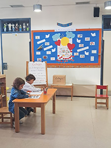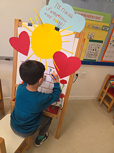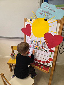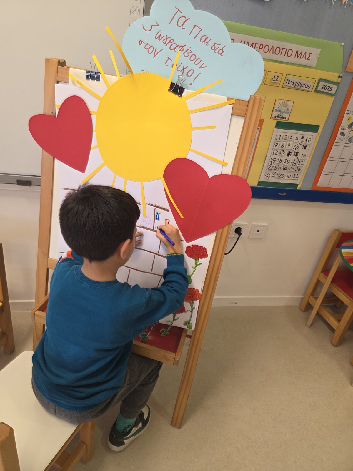Στη συνέχεια, στολίσαμε το ταμπλό μας με θέμα «Τα παιδιά ζωγραφίζουν στον τοίχο».