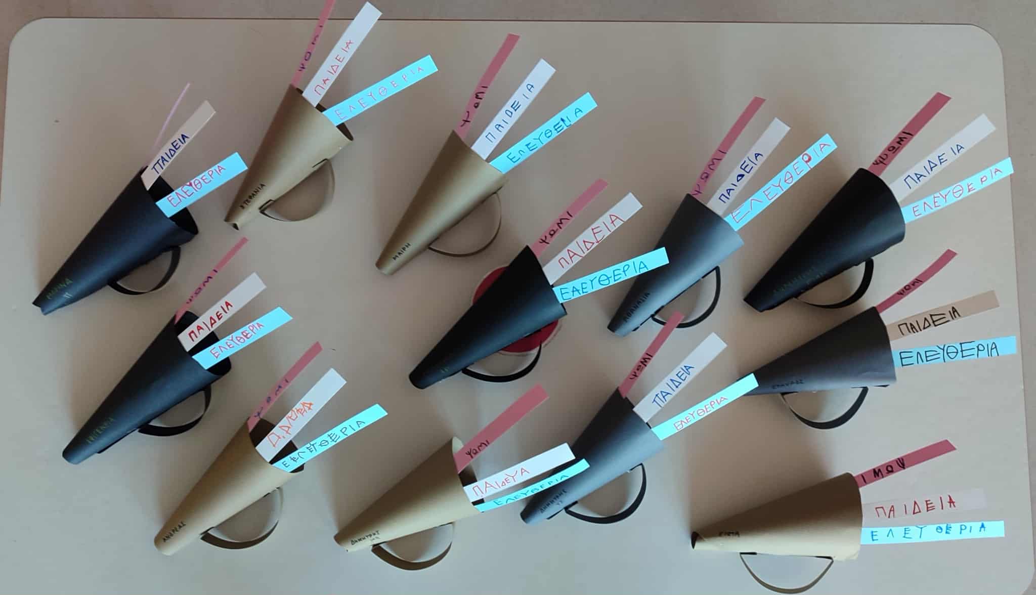Τέλος, φτιάξαμε χάρτινες ντουντούκες, μέσα από τις οποίες ξεπηδούσαν οι λέξεις