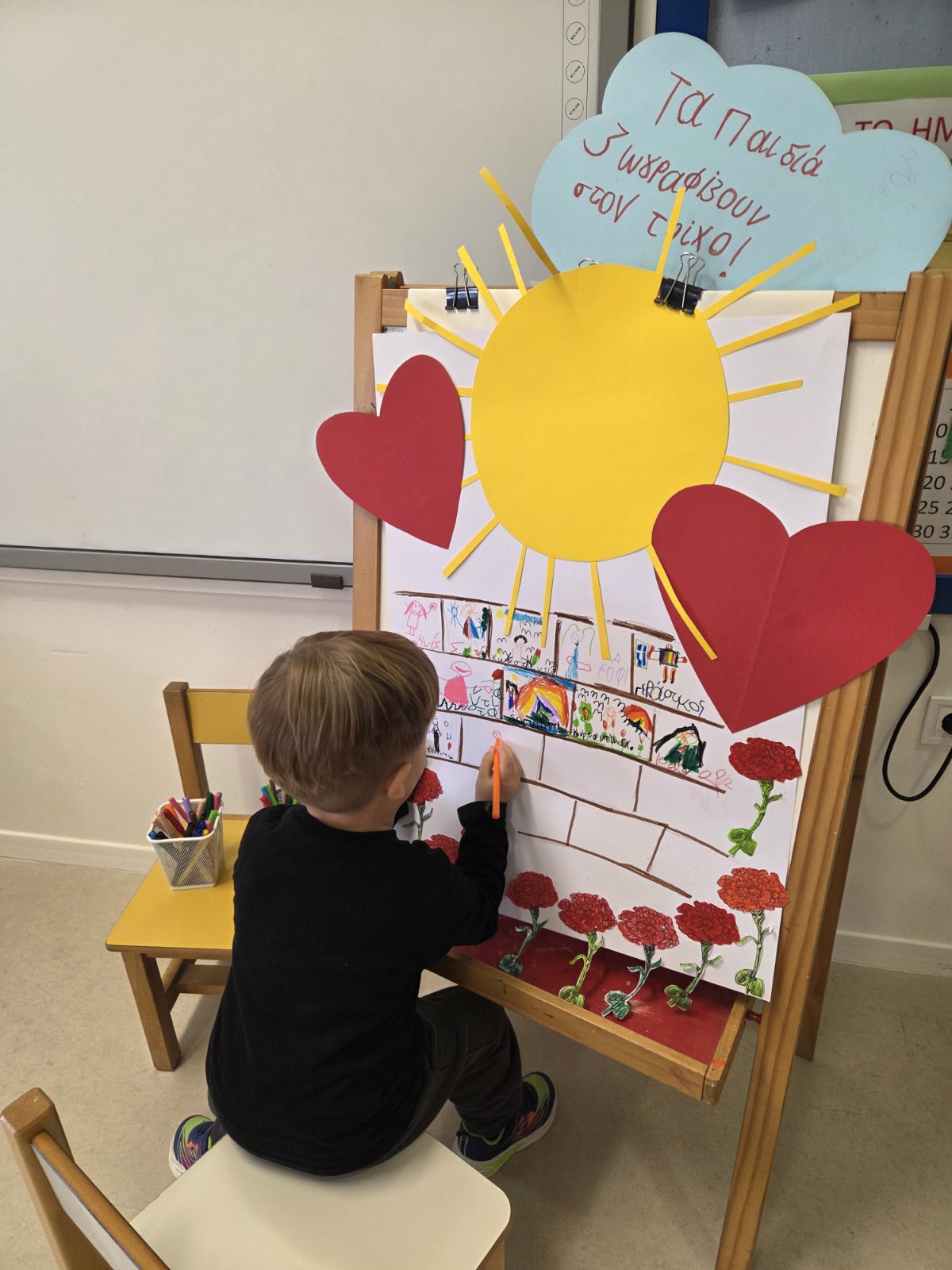 Τα παιδιά ζωγράφισαν τον δικό τους τοίχο με εικόνες ειρήνης και ελευθερίας,