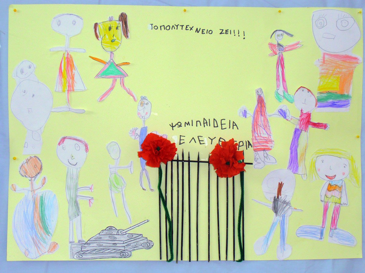 Κόψαμε με το ψαλίδι αυτά που ζωγραφίσαμε για το Πολυτεχνείο