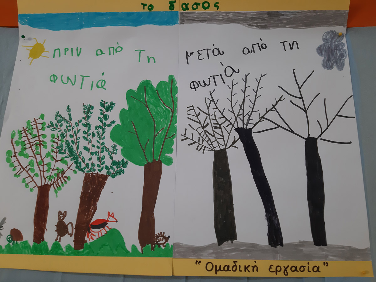4ο:Φτιάξαμε ομαδική εργασία με τα ζώα του δάσους που κινδυνεύουν από τις φωτιές