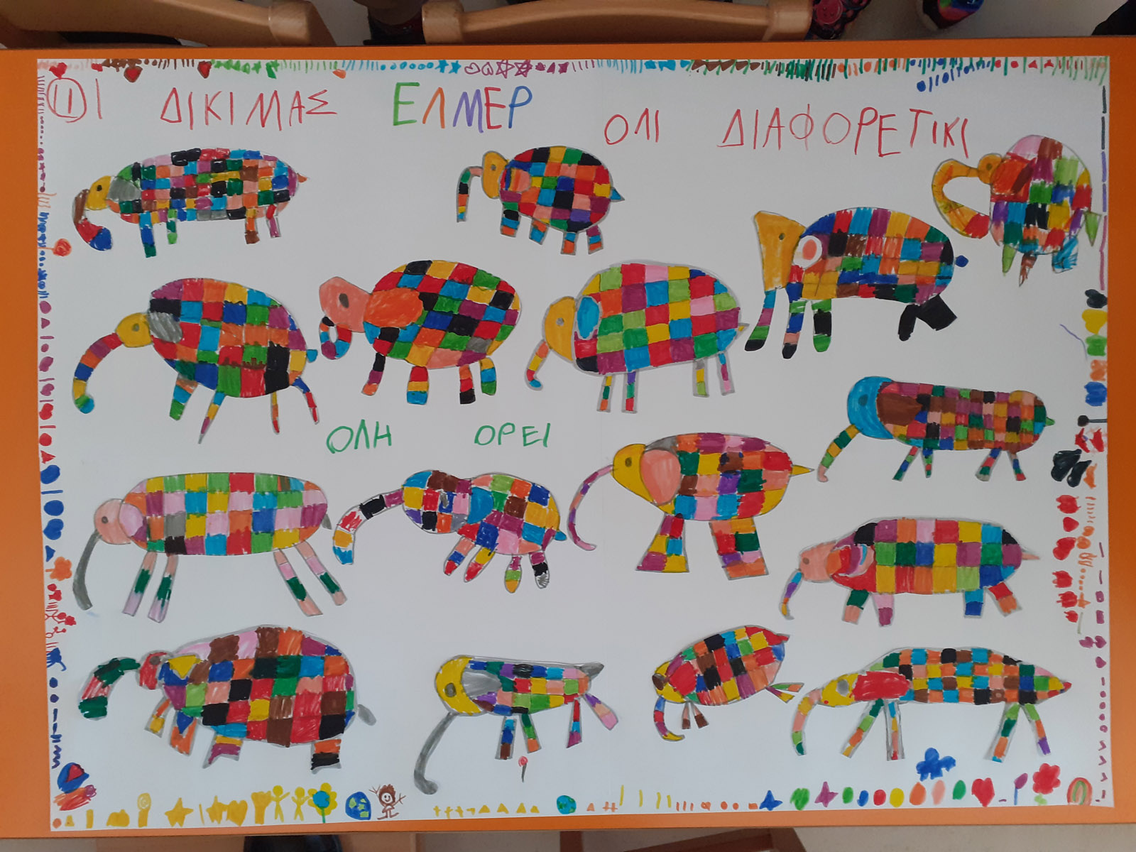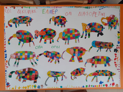 μας έδωσε την ιδέα να ζωγραφίσουμε τους δικούς μας διαφορετικούς Έλμερ!