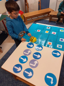 με βάση αυτόν τον κώδικα, προγραμματίσαμε το ρομποτάκι "bee-bot"