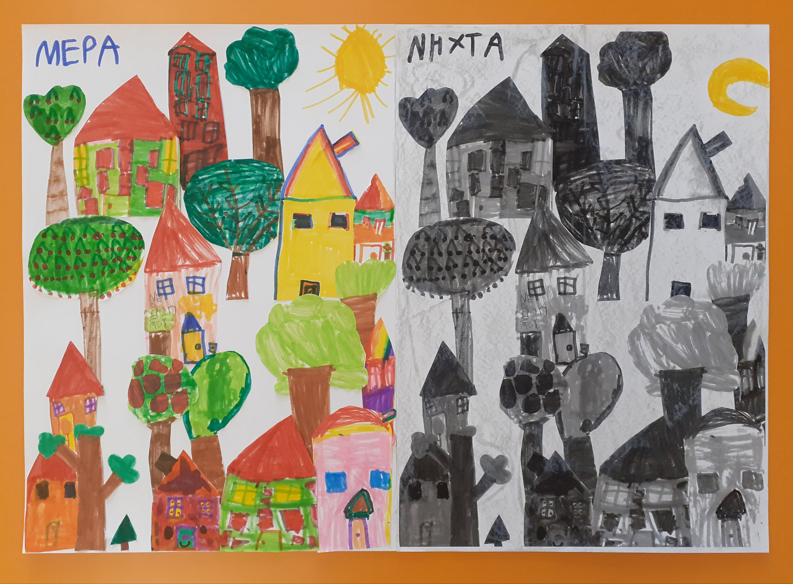 πειραματιστήκαμε και φτιάξαμε μια ομαδική εργασία με θέμα "Μέρα και Νύχτα".