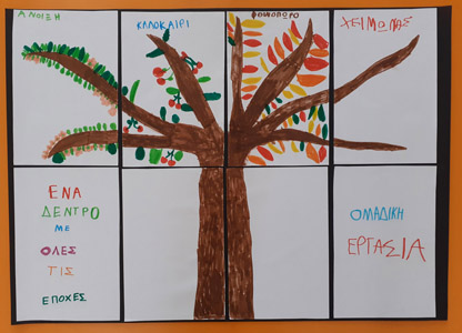 και ζωγραφίσαμε ένα δέντρο που συνδυάζει τις 4 εποχές.