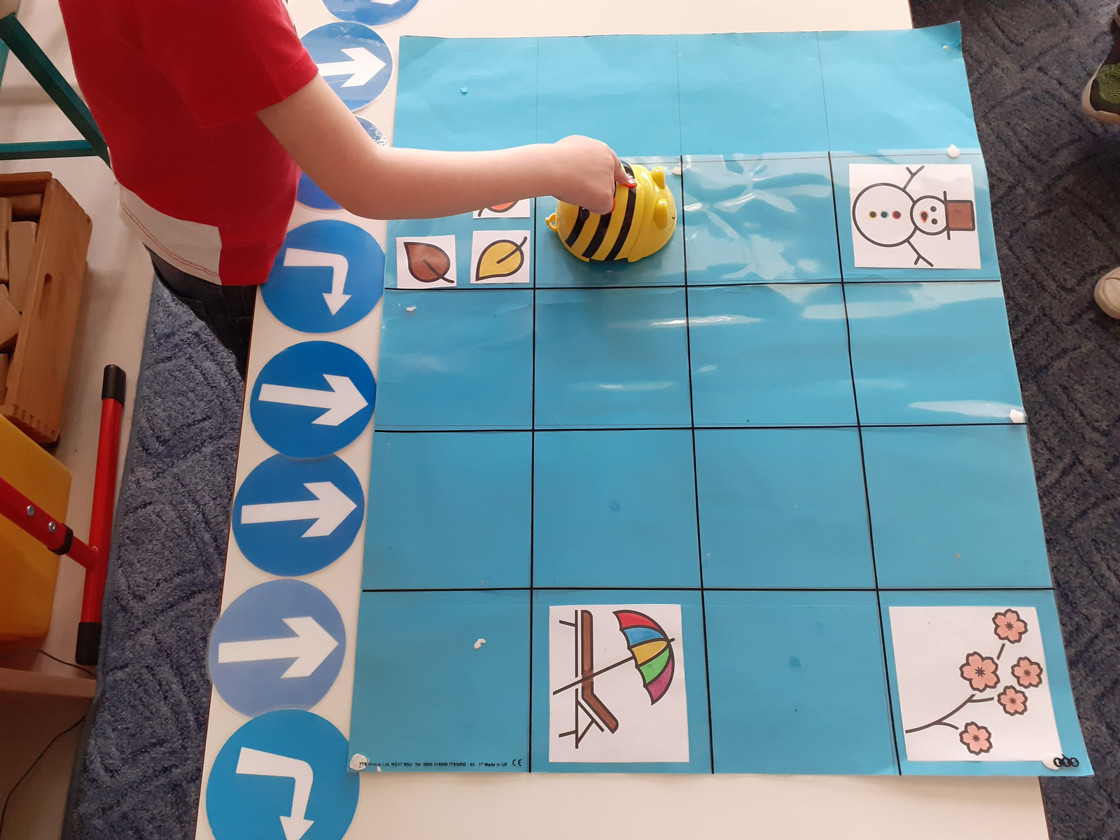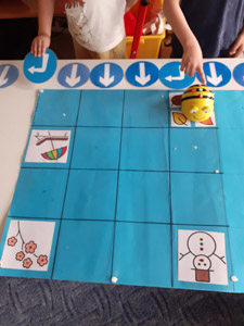 Να πειραματιστούν με το ρομποτάκι bee-bot και να μάθουν να το προγραμματίζουν για να ακολουθήσει τη σωστή διαδρομή.
