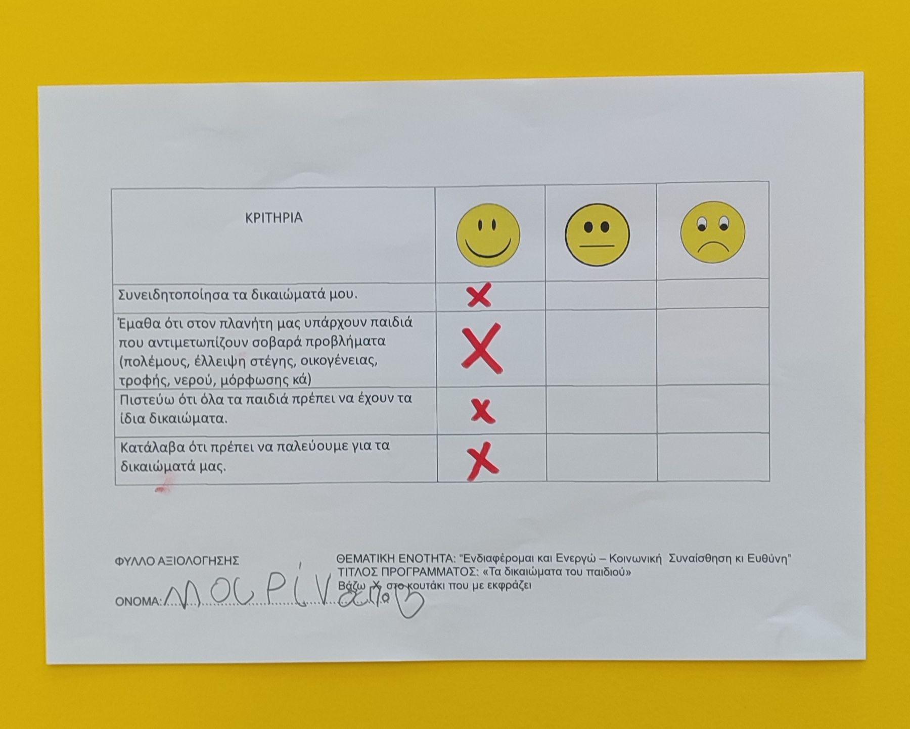 των Εργαστηρίων Δεξιοτήτων, υλοποιήσαμε το πρόγραμμα «Τα δικαιώματα του παιδιού».