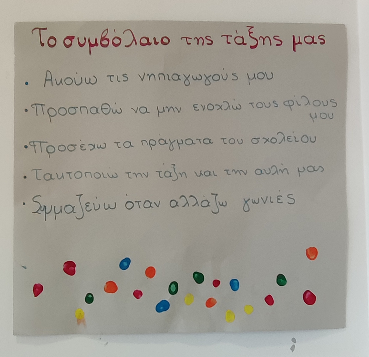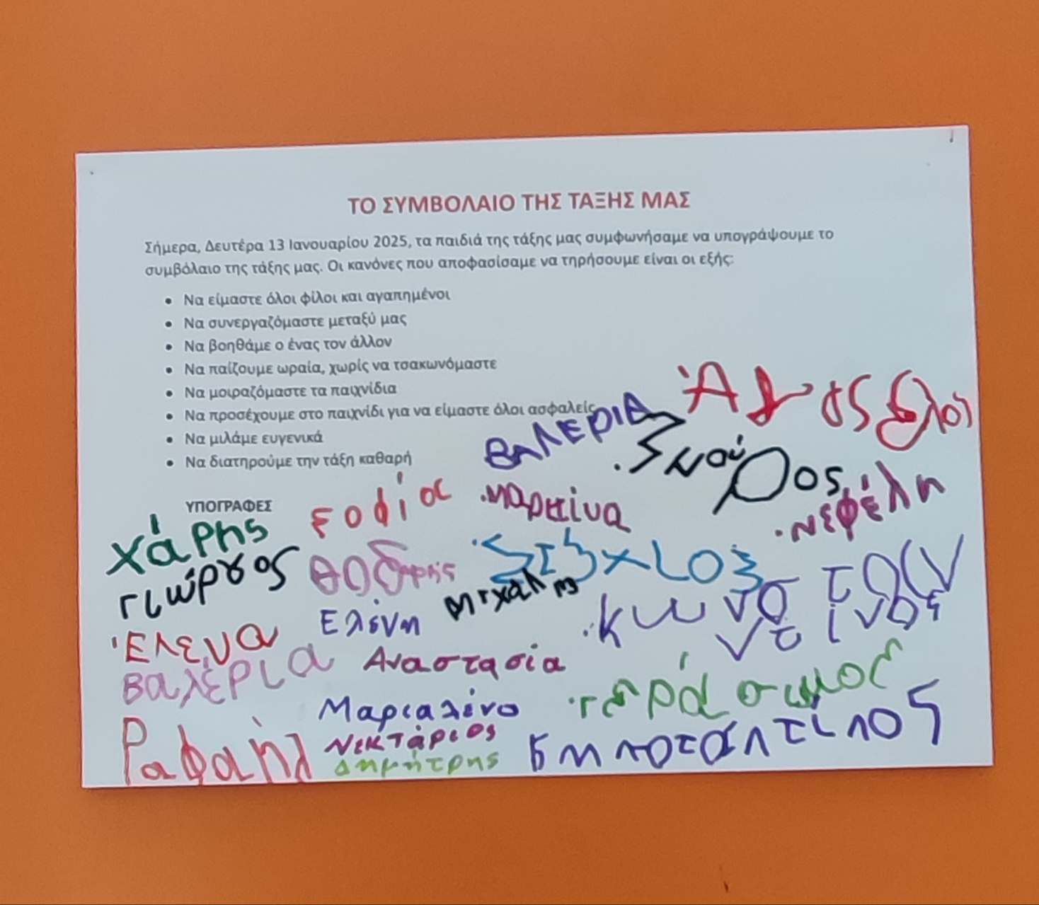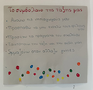 Τα παιδιά δημιούργησαν την αλυσίδα της φιλίας και έφτιαξαν το συμβόλαιο της τάξης τους.