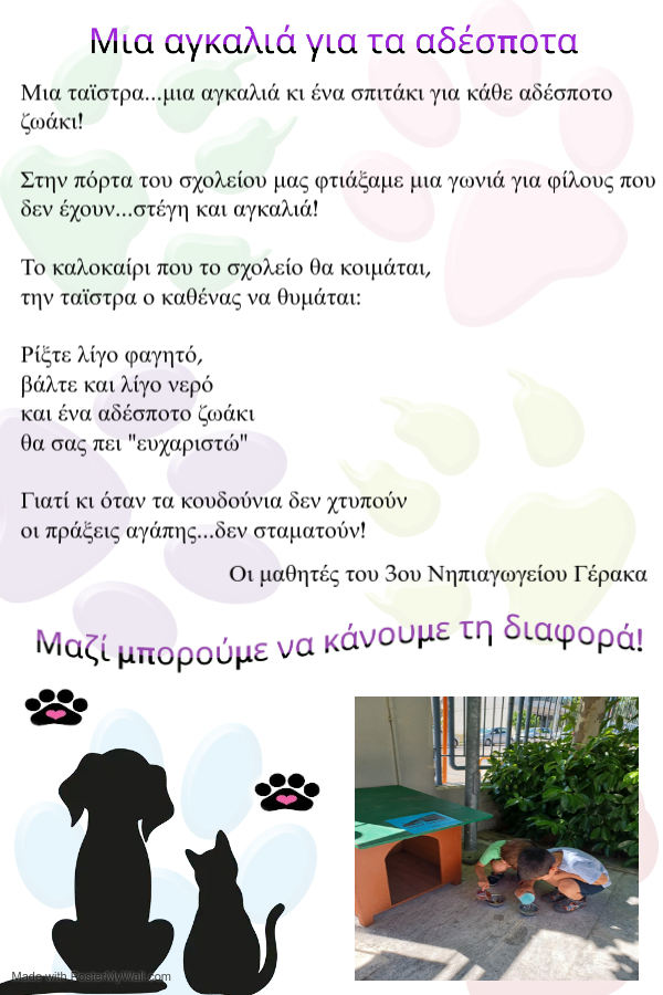 Με αφορμή την Πανελλήνια Σχολική Ημέρα Φιλοζωίας και Παγκόσμια Ημέρα Αδέσποτων Ζώων