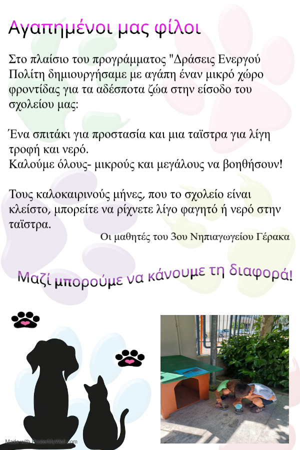 και τη δράση μας για τον "Ενεργό Πολίτη" που αφορά στο ίδιο θέμα "Τα Αδέσποτα ζώα",
