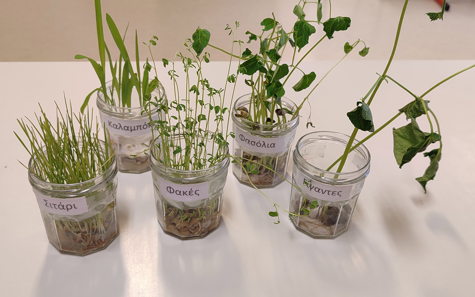 Φυτέψαμε όσπρια σε μικρά βαζάκια και παρατηρήσαμε με ενθουσιασμό την ανάπτυξή τους.
