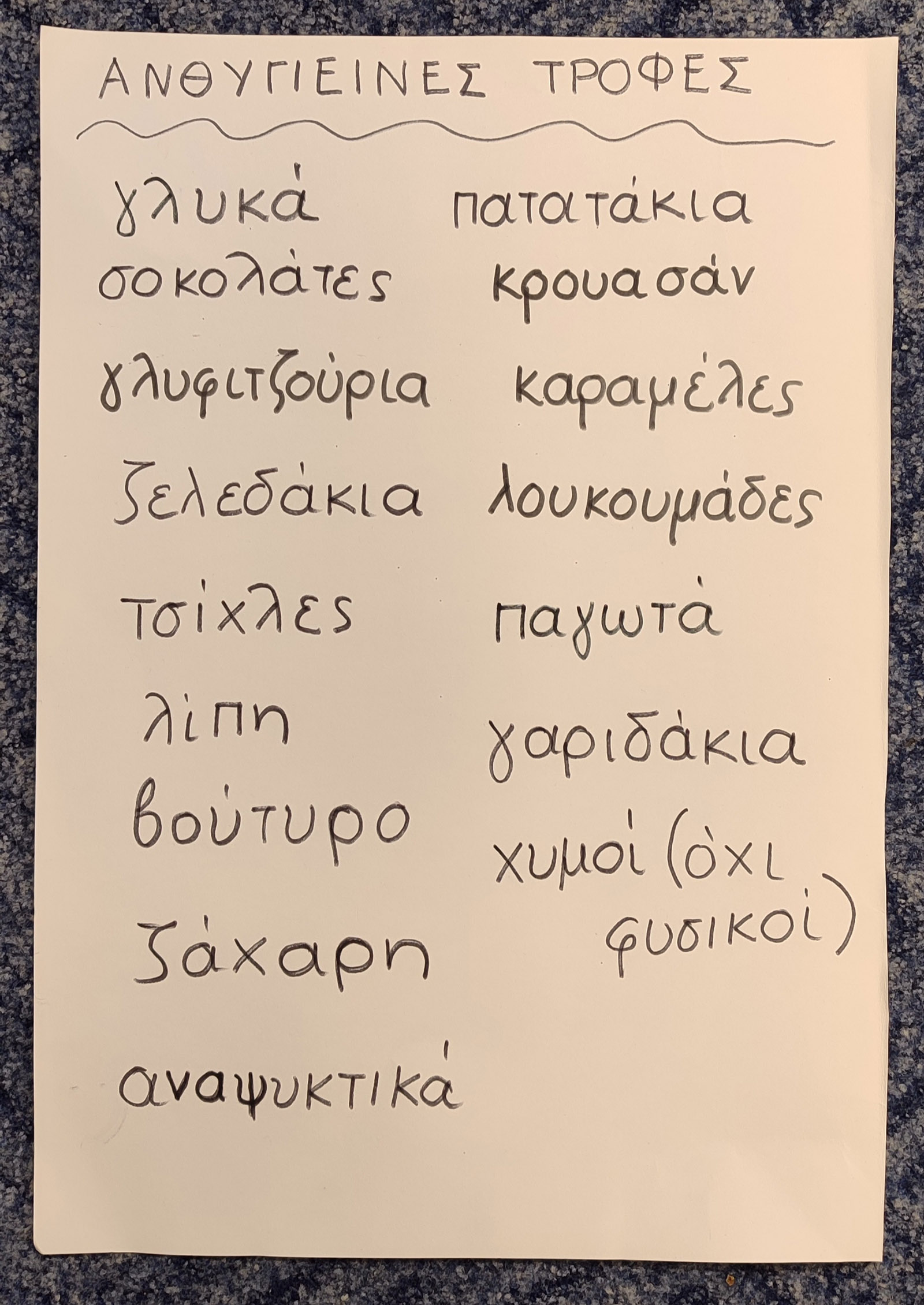 για το τι σημαίνει υγιεινή διατροφή και ομαδοποίησαν τρόφιμα σε υγιεινά και ανθυγιεινά,