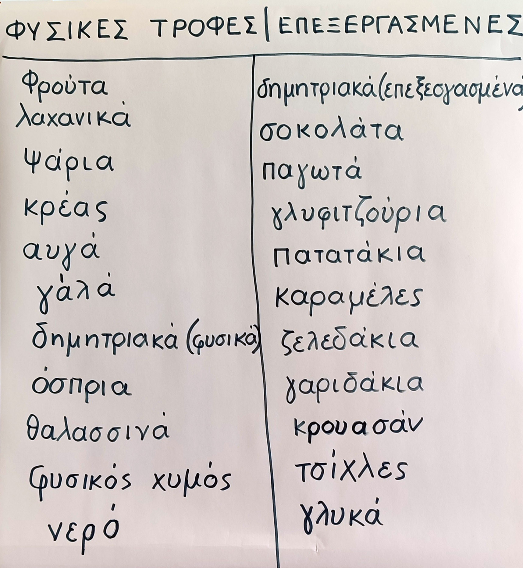Στη συνέχεια, ταξινόμησαν τρόφιμα σε φυσικά και επεξεργασμένα,