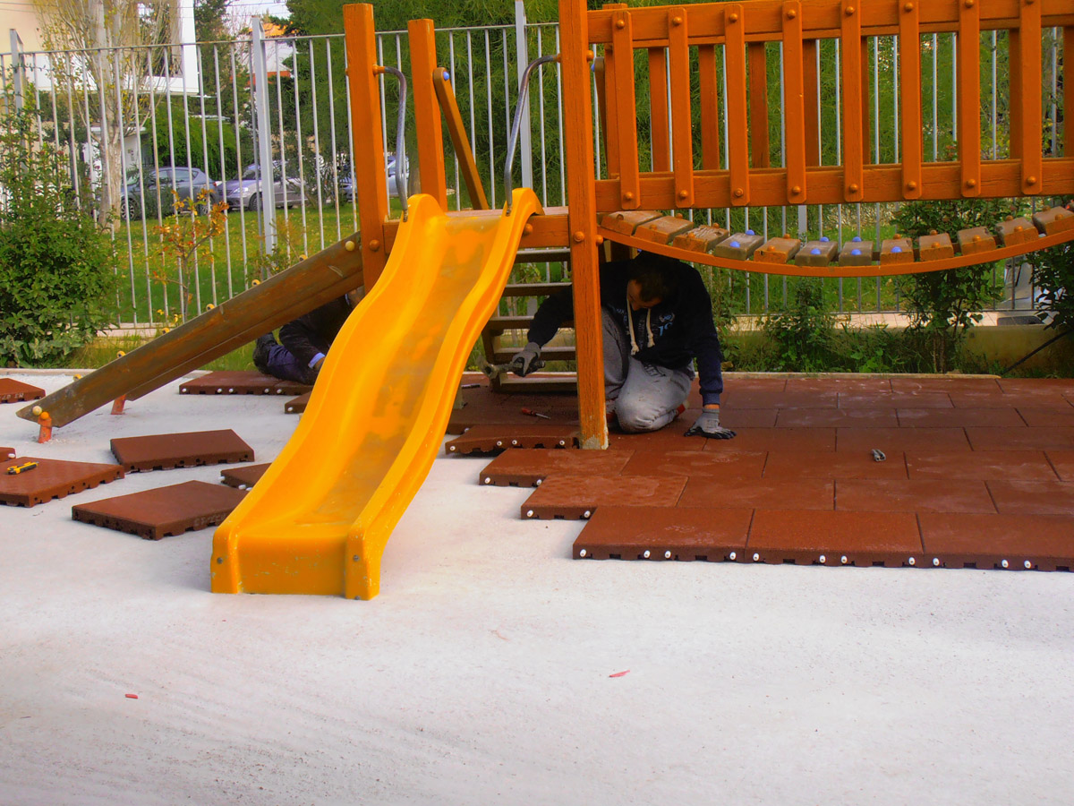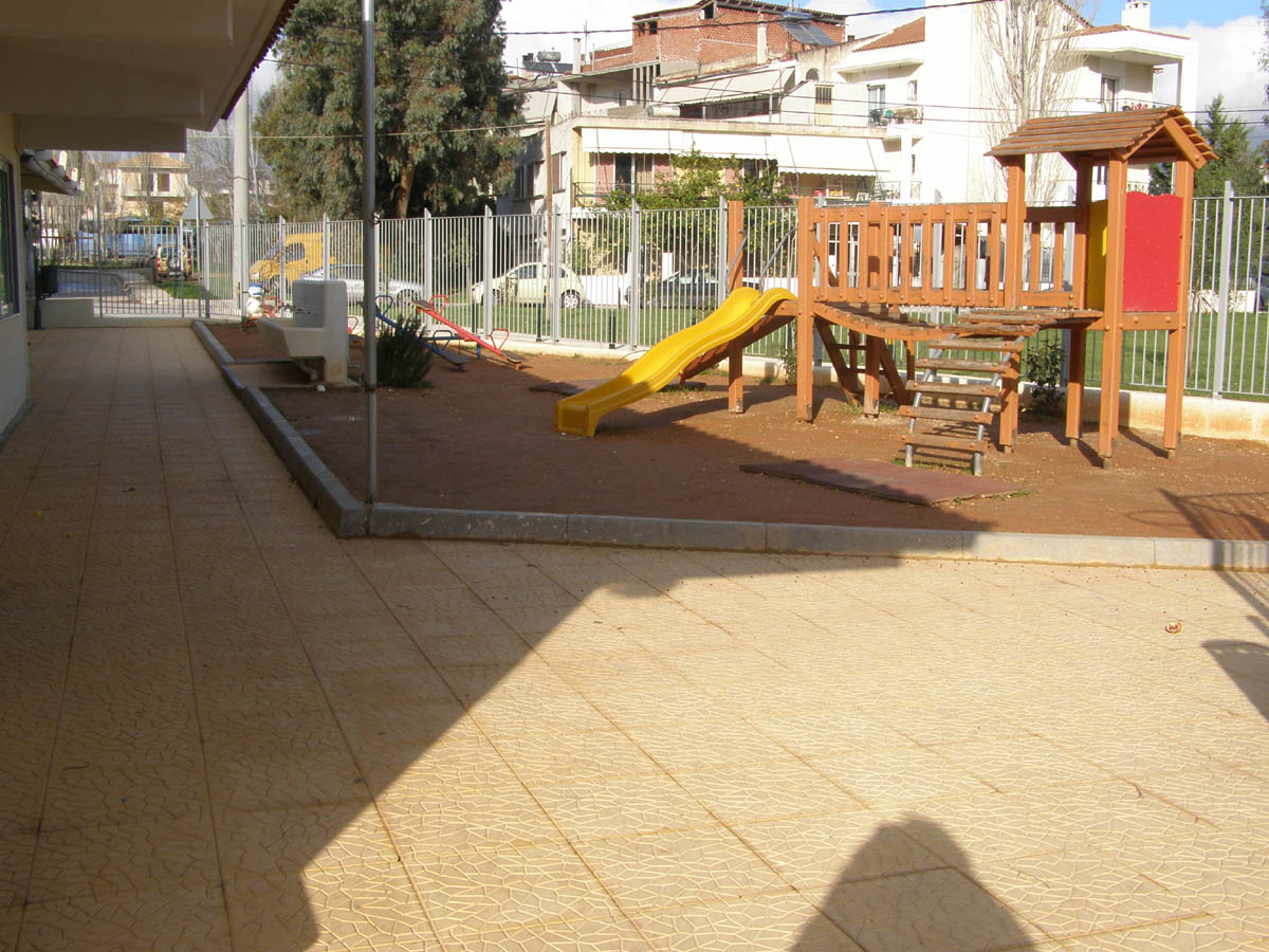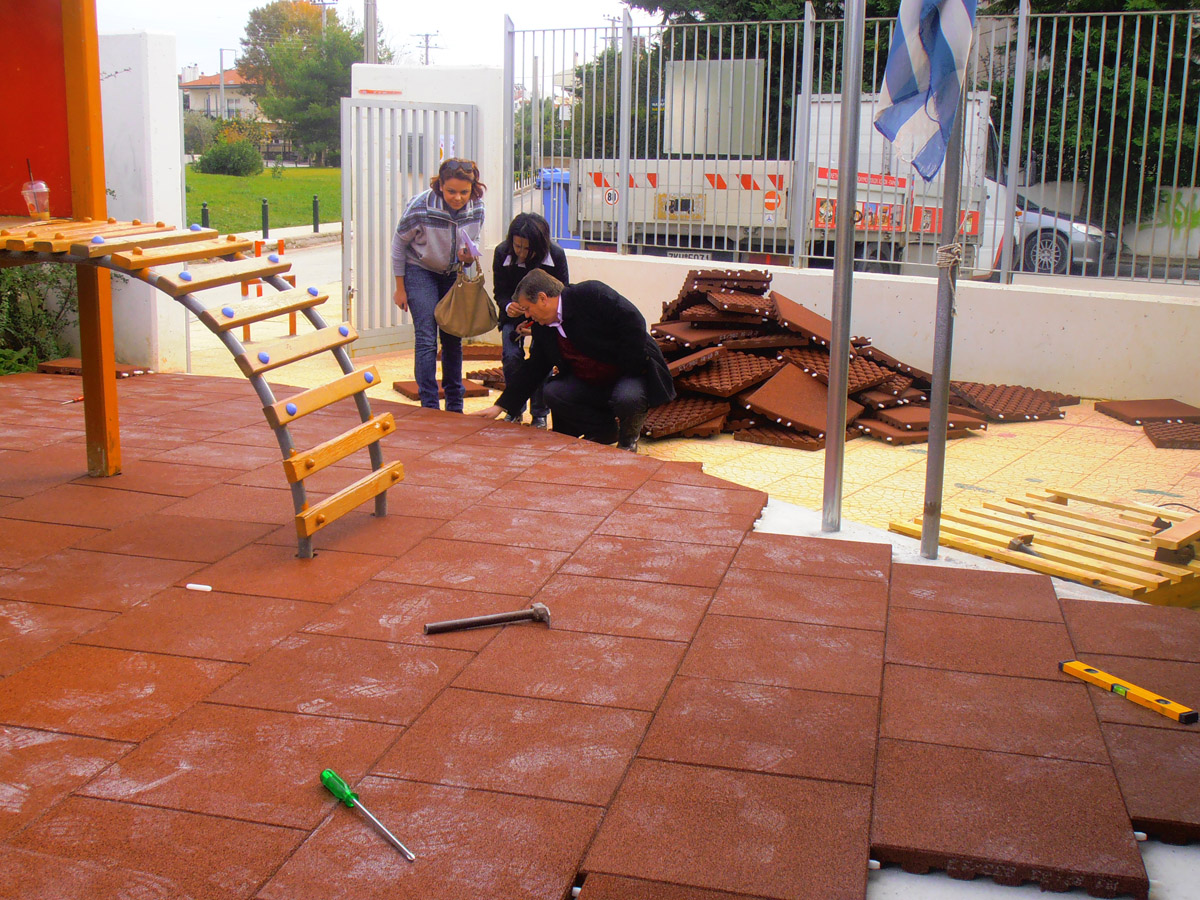 την πλακόστρωση του αύλειου χώρου του με πλάκες ασφαλείας,