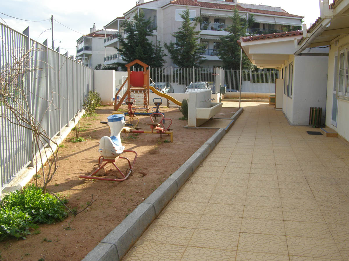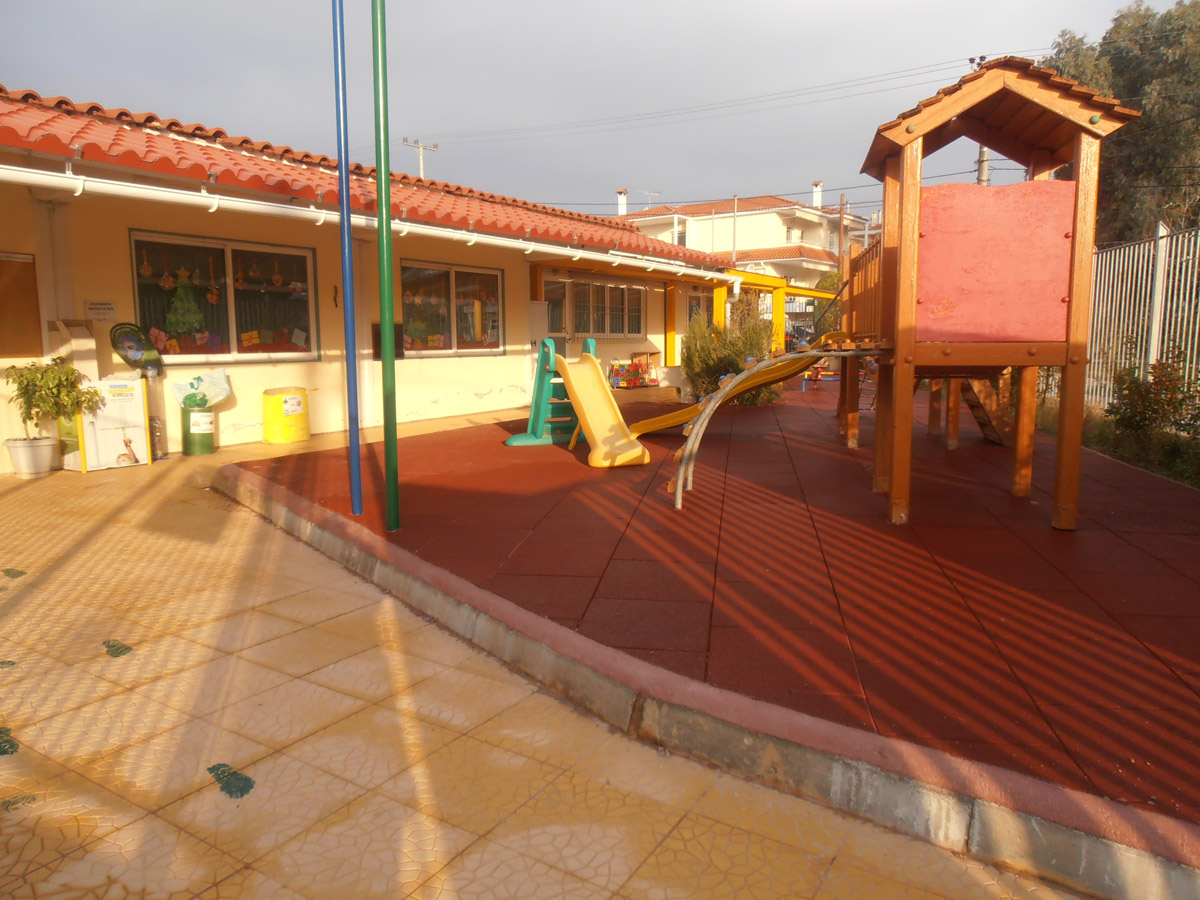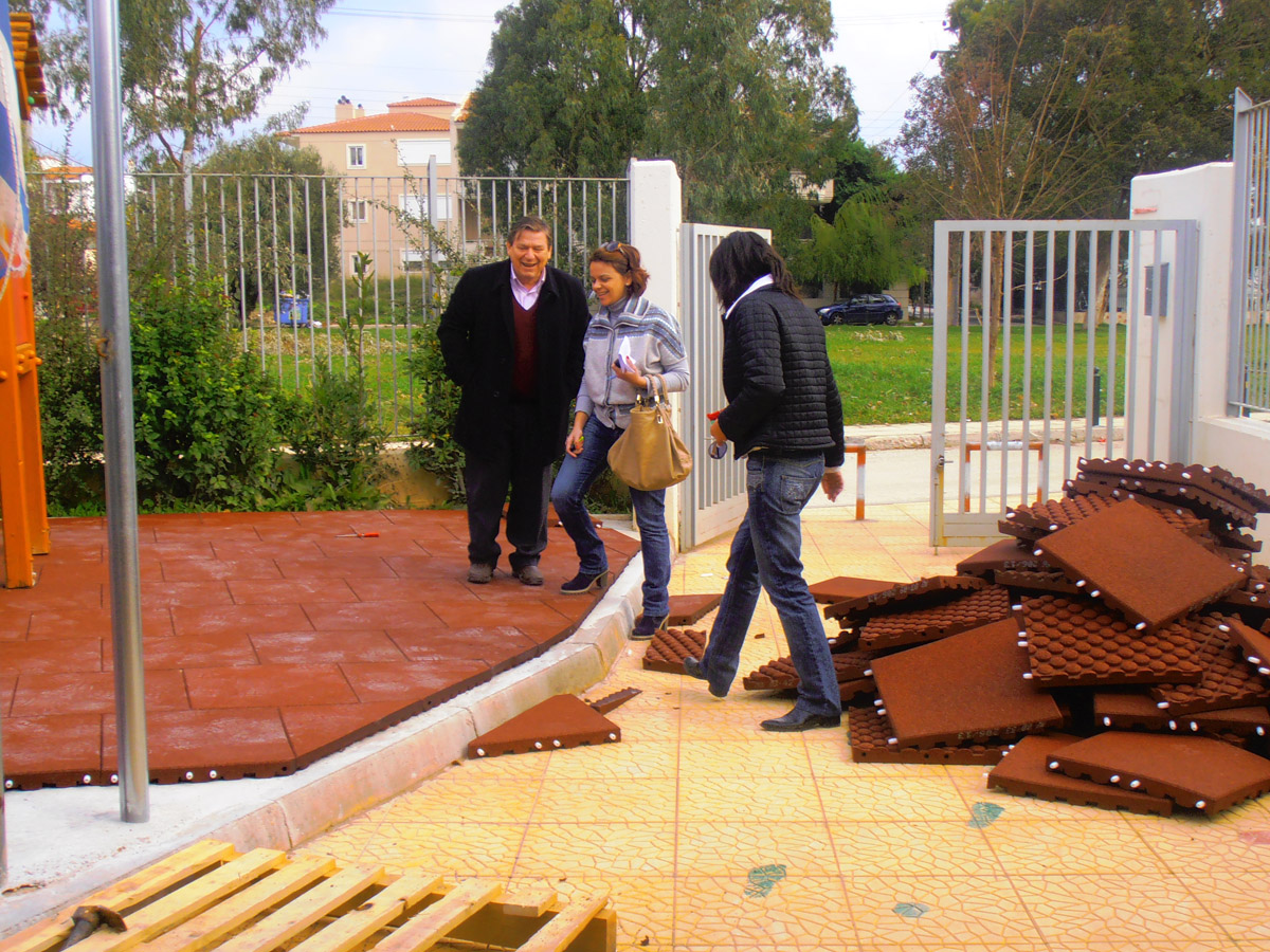 την πλακόστρωση του αύλειου χώρου του με πλάκες ασφαλείας,