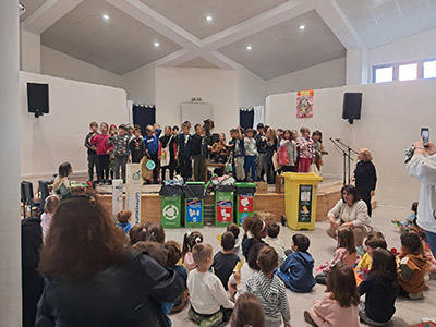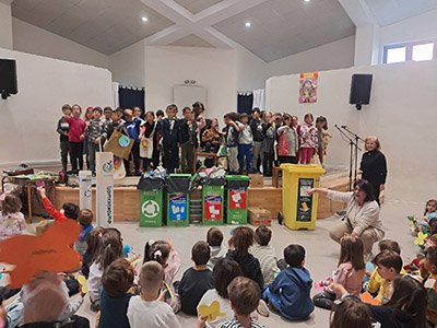 από ανακυκλώσιμα υλικά που είχαν φτιάξει τα παιδιά του Νηπιαγωγείου.