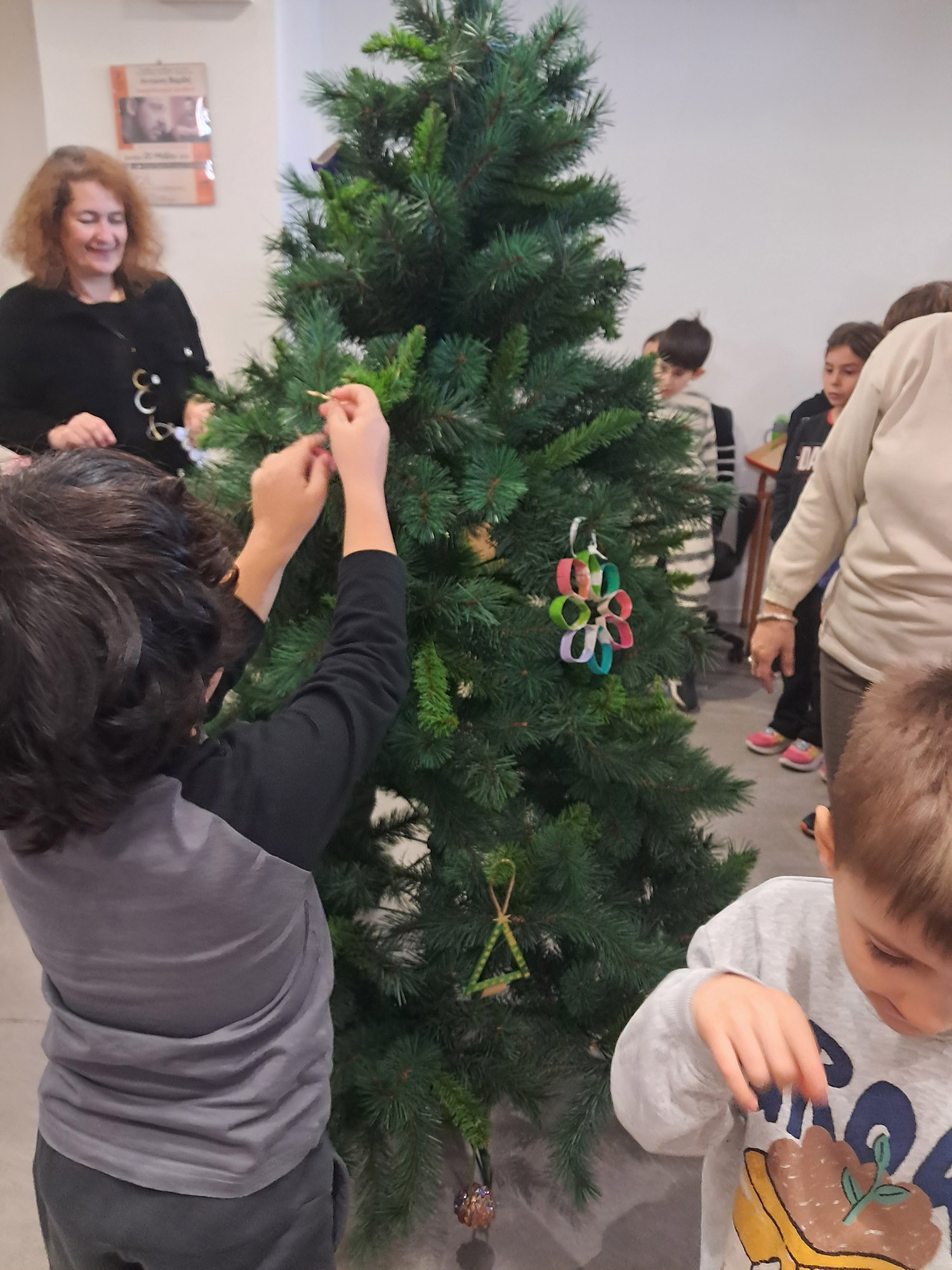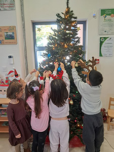 Την ίδια μέρα στολίσαμε το Χριστουγεννιάτικο δέντρο του Δημοτικού με στολίδια