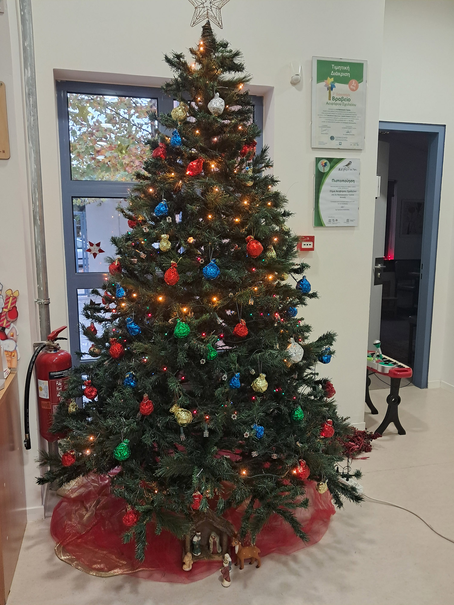 Το δεντράκι μας έγινε πολύ όμορφο και στόλιζε την είσοδο του σχολείου μας.
