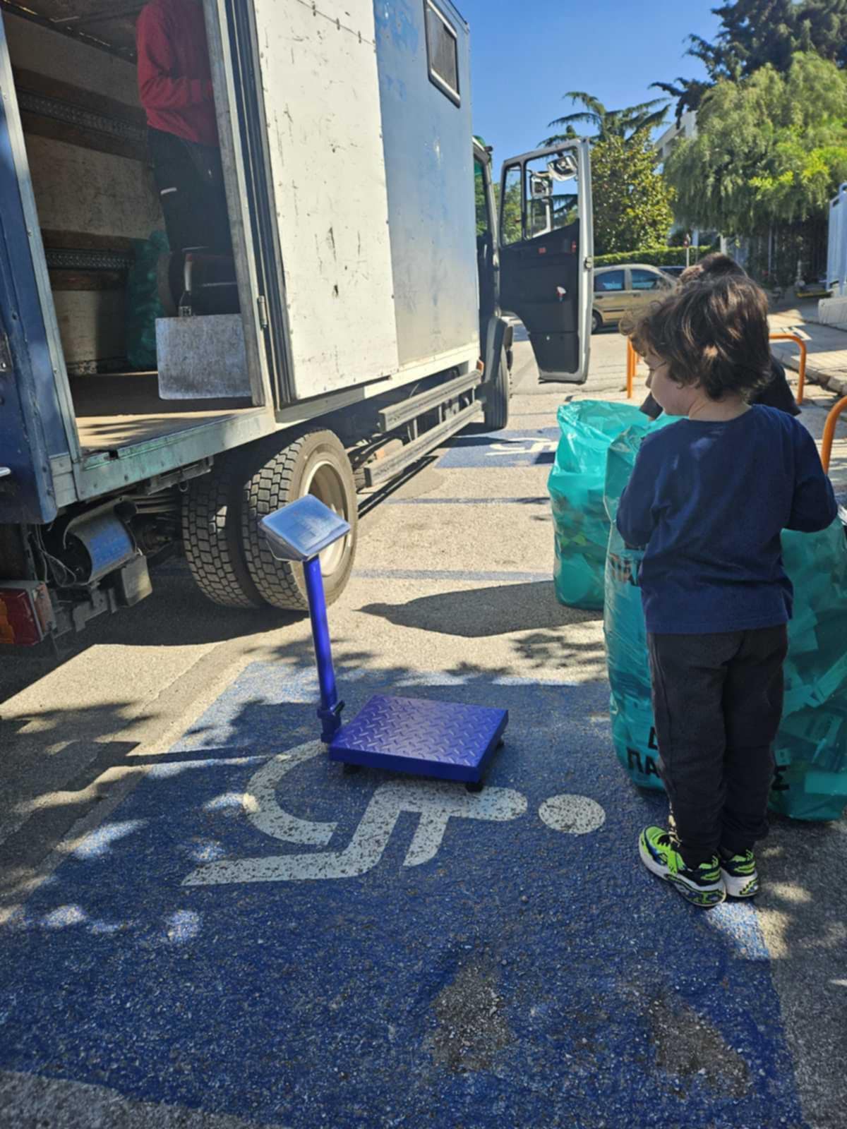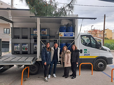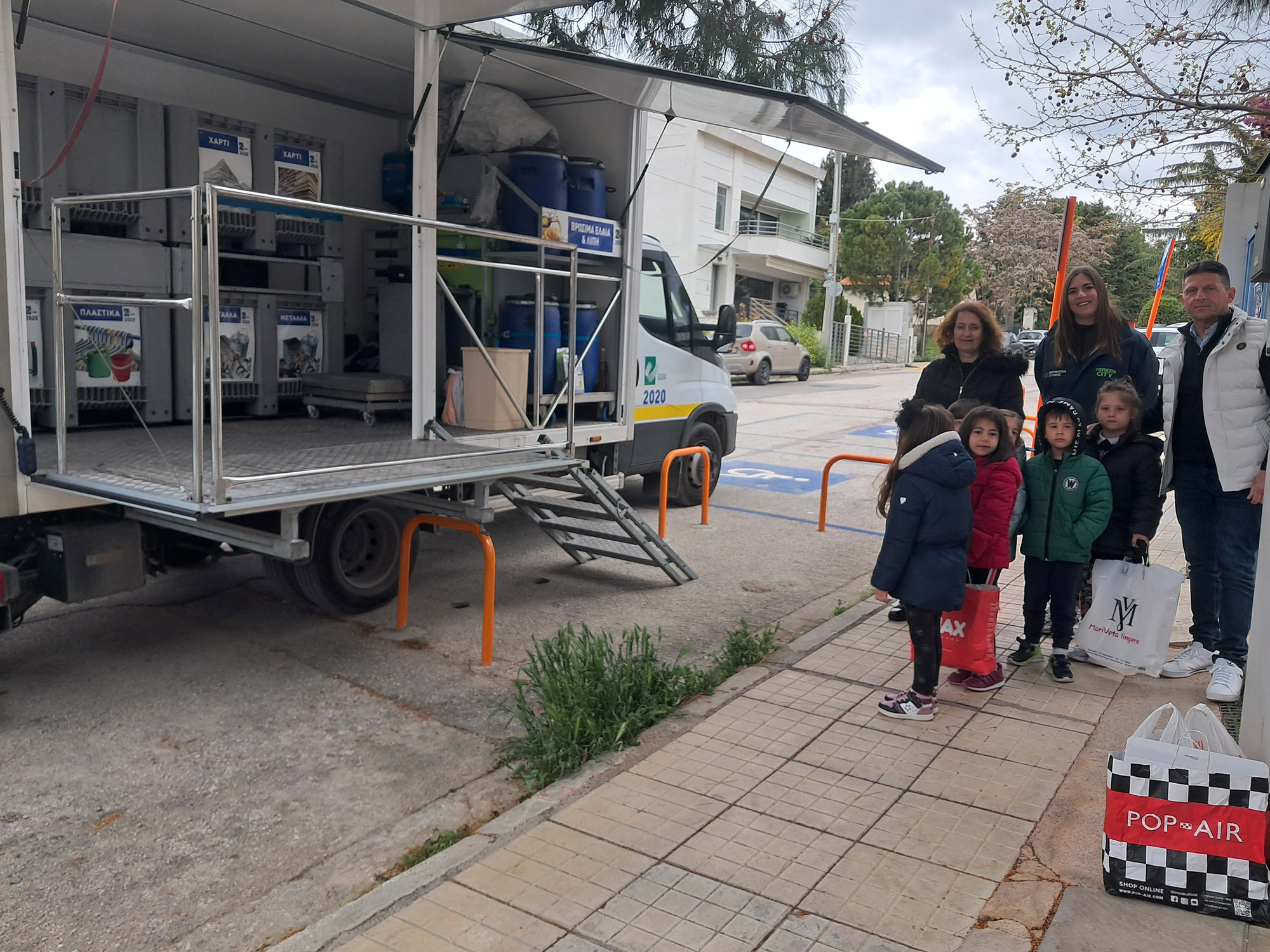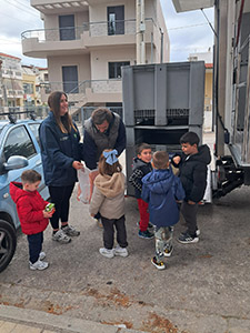 το βαν της ανακύκλωσης και τα παιδιά συμμετείχαν στη διαδικασία