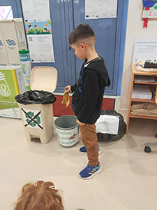 Στη συνέχεια τοποθετήσαμε τα υλικά που είχαμε φέρει από το σπίτι μας στους αντίστοιχους κάδους.