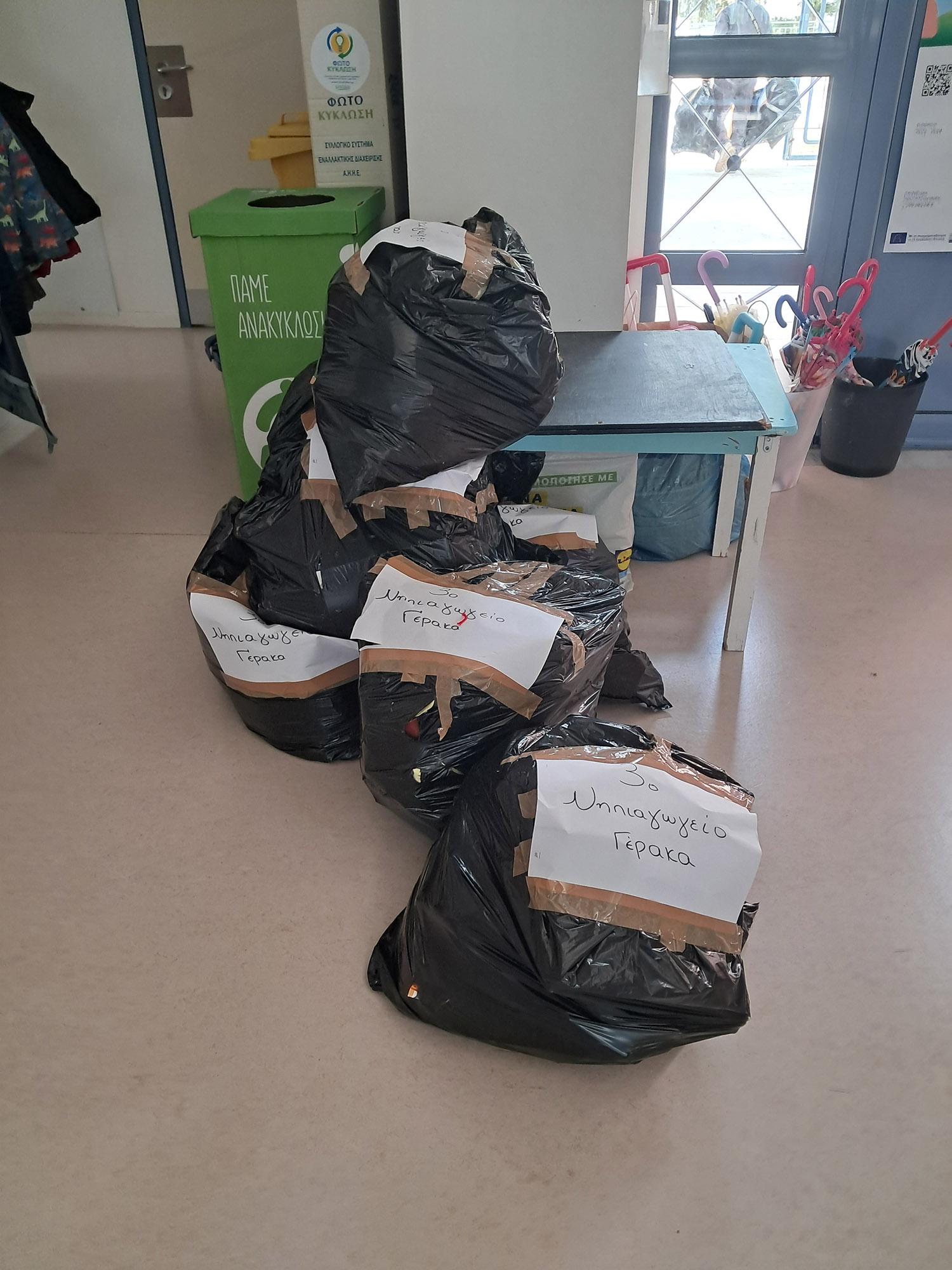 Την επόμενη μέρα παραδώσαμε τα υλικά που συλλέξαμε (χαρτί, πλαστικό και αλουμίνιο)