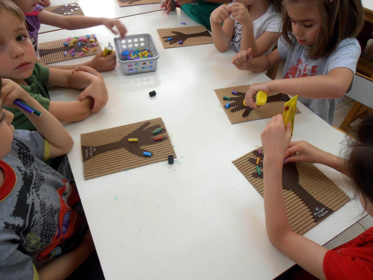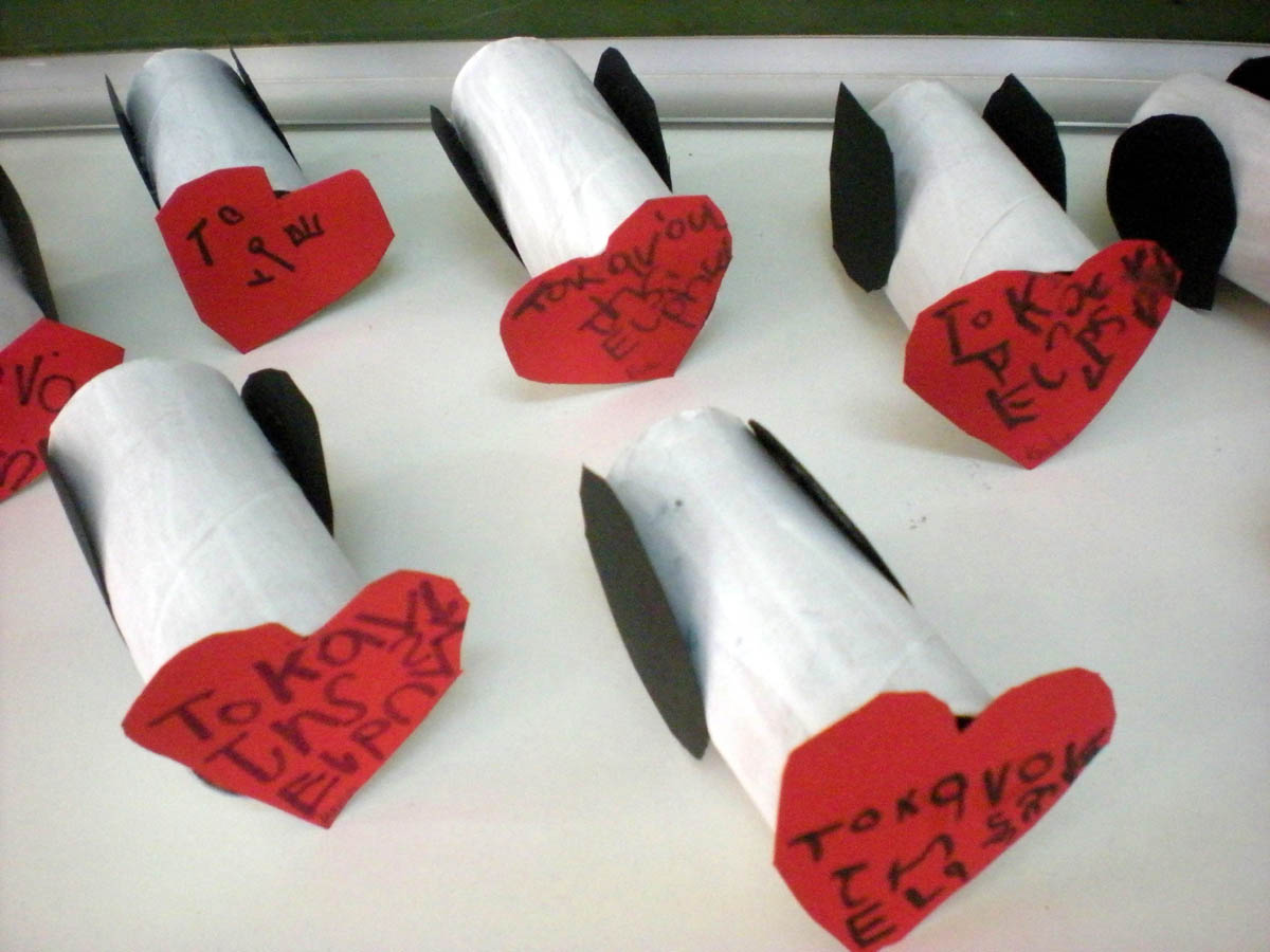 προσκλήσεις για τη γιορτή από ανακυκλωμένο χαρτί και υλικά που περίσσεψαν από όλη τη σχολική χρονιά.