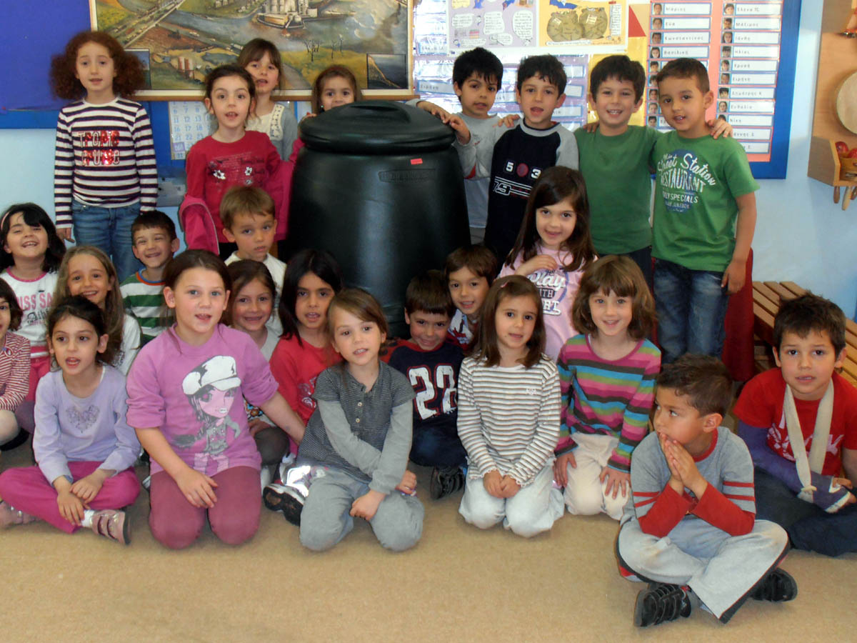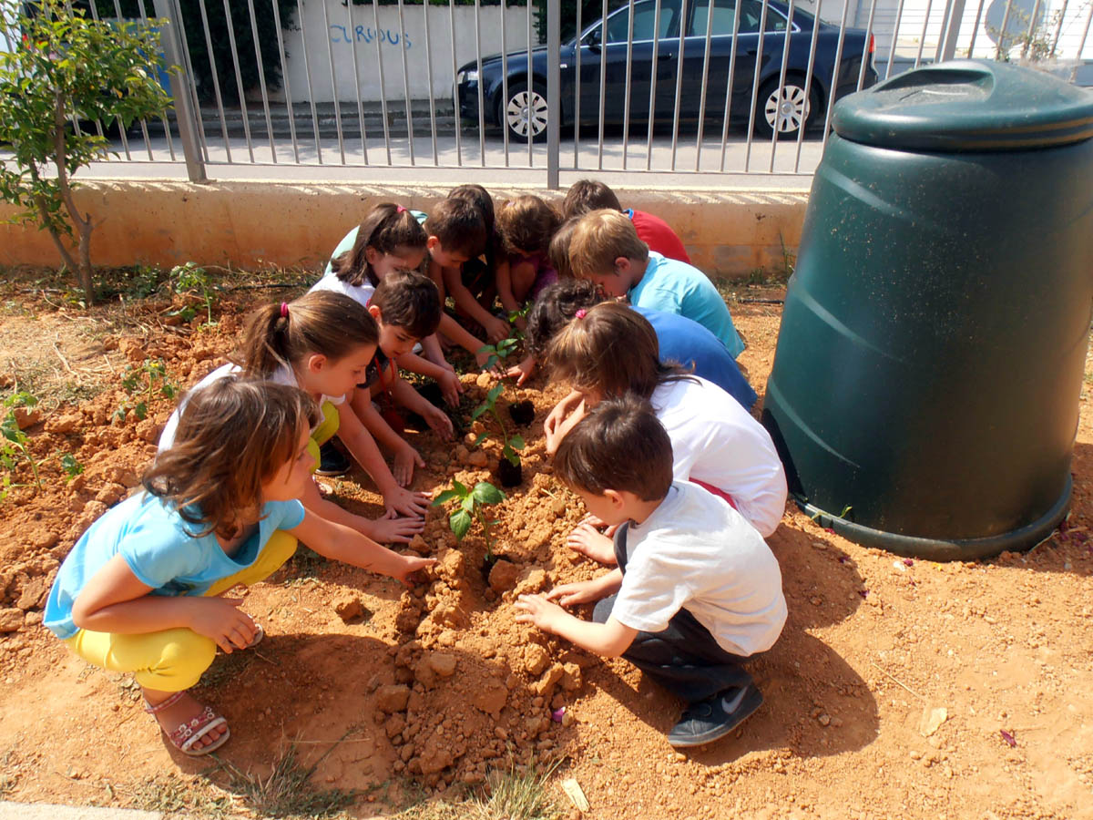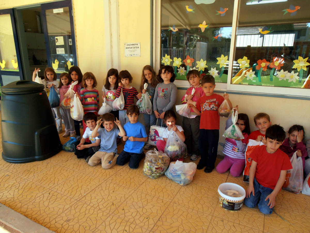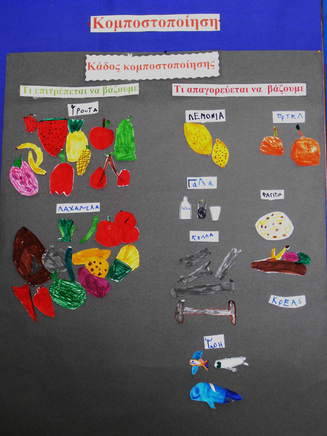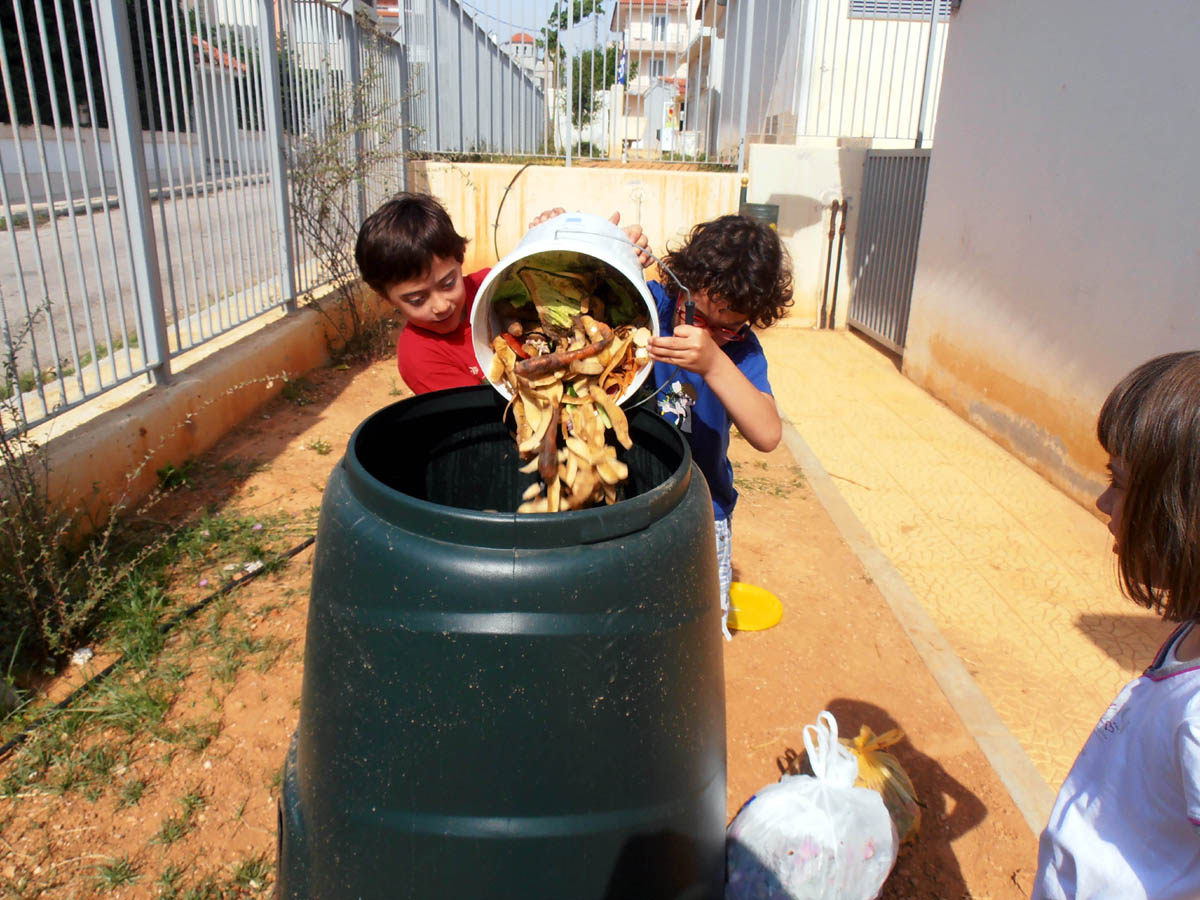 Αλλά και ανακύκλωση οργανικών απορριμμάτων κάνουμε για την δημιουργία λιπάσματος για το λαχανόκηπό μας.