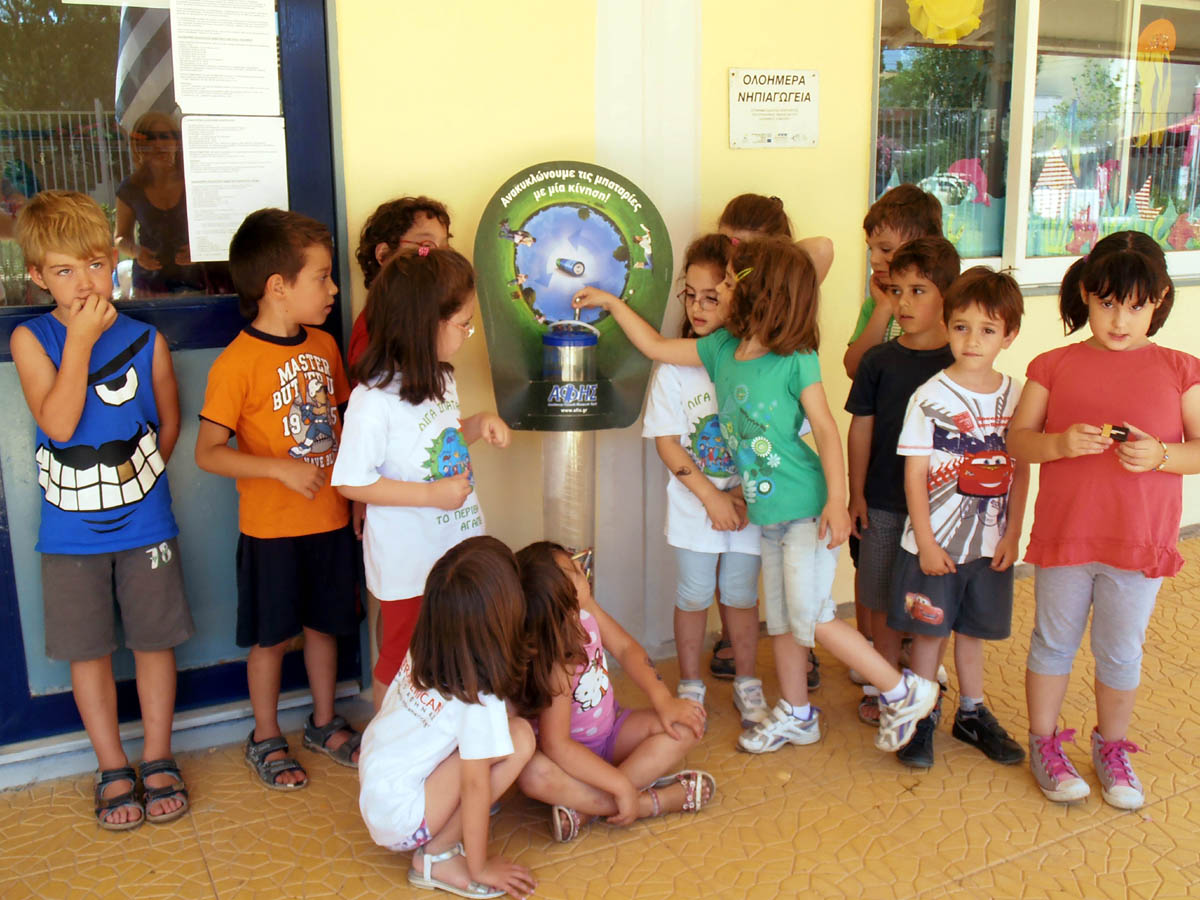 μέσα στο σχολείο όλη τη χρονιά, με ανακύκλωση μπαταριών
