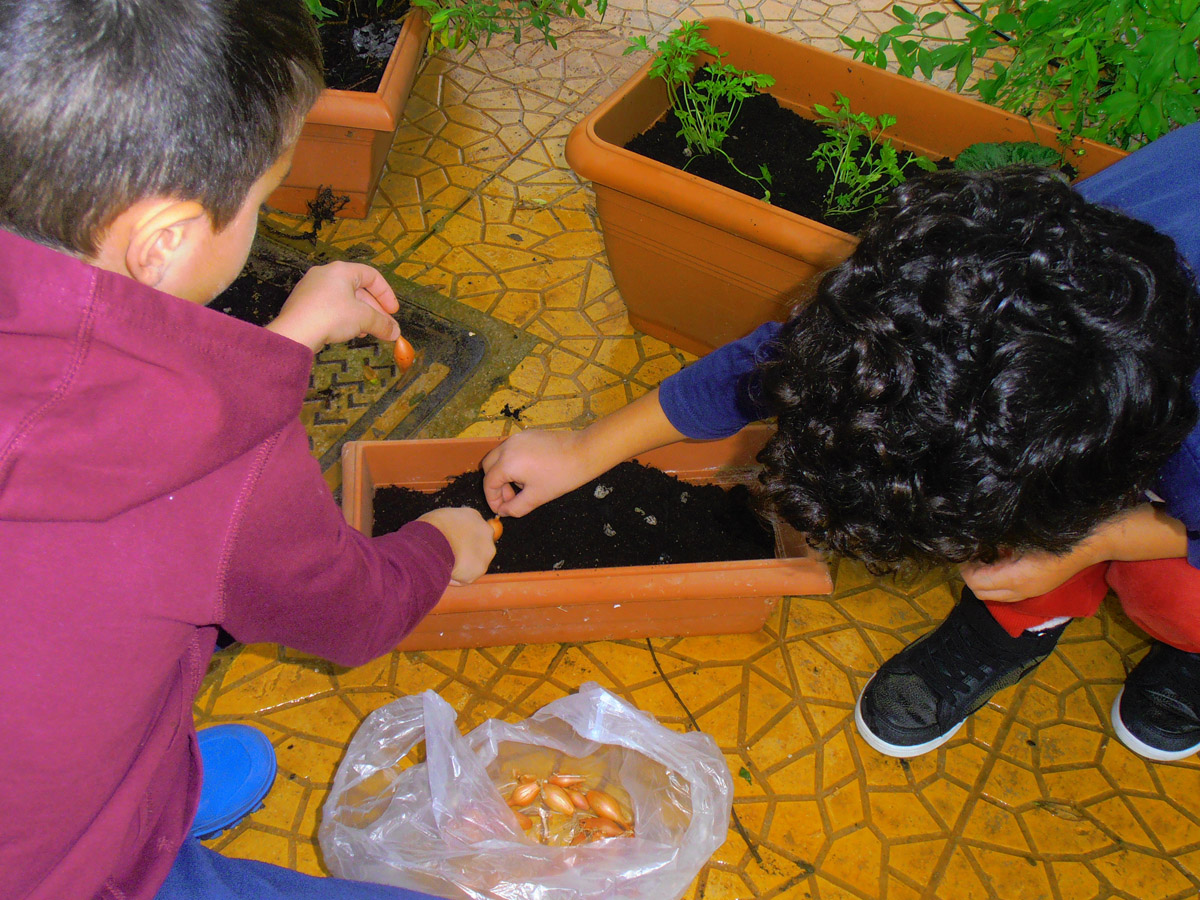 - με το να καλλιεργούμε τον λαχανόκηπο μας με τη βοήθεια των μεγάλων που εθελοντικά μας την πρόσφεραν,