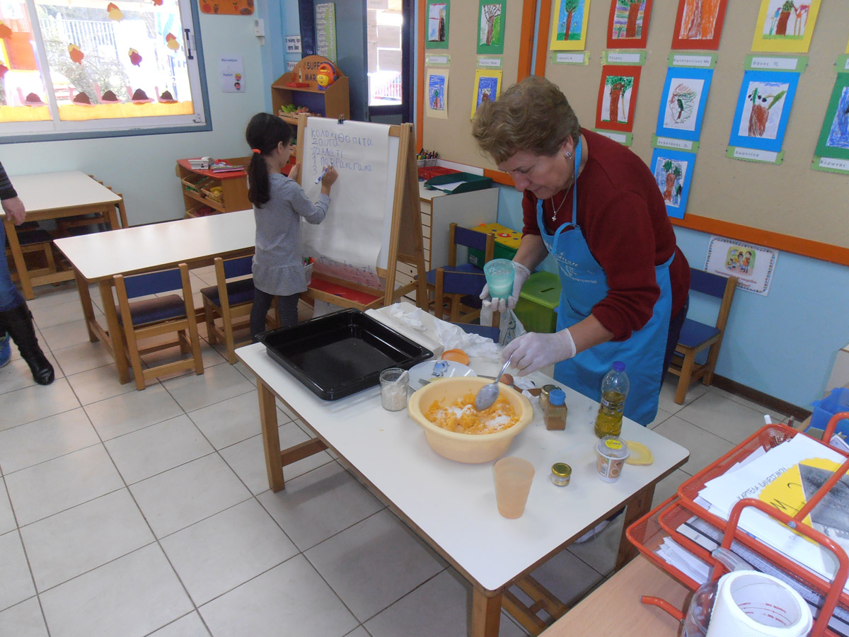 προσφέρθηκε να μας φτιάξει κολοκυθόπιτα από τις βιολογικές κολοκύθες του κήπου μας.
