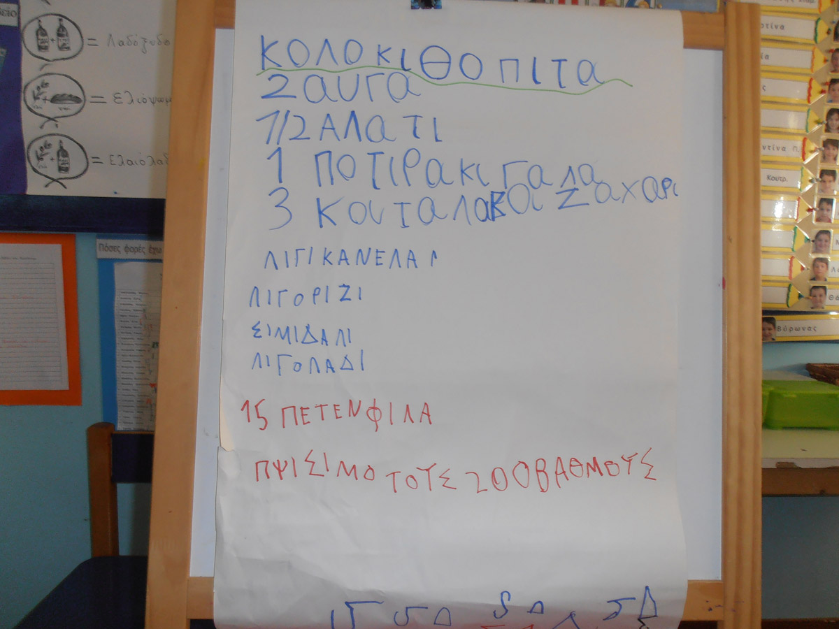 Ενώ η γιαγιά ανακατεύει τα υλικά, τα κορίτσια γράφουν τη συνταγή
