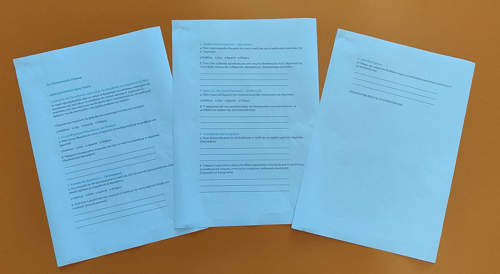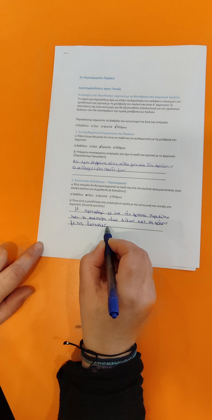 στο οποίο κατέγραψαν τις ανησυχίες, τις προσδοκίες και τις ανάγκες τους σε σχέση με τη μετάβαση των παιδιών τους